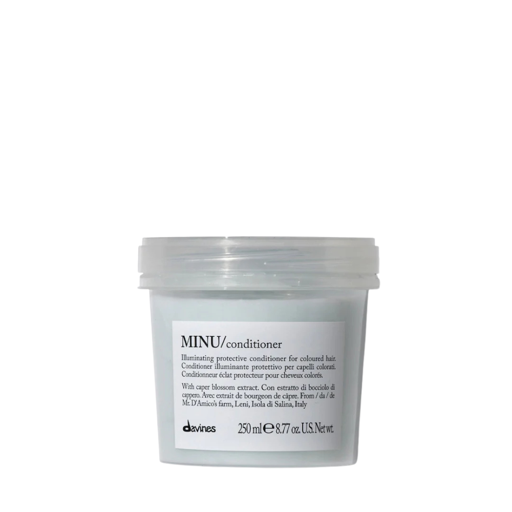 Apsaugok plaukų spalvą ir išlaikyk jos ryškumą ilgiau su Davines „MINU Conditioner“ – intensyviai minkštinančiu ir drėkinančiu kondicionieriumi, sukurtu specialiai dažytiems ir spalvą prarasti linkusiems plaukams. Jo kremiška tekstūra švelniai apgaubia plauką, glotnina, maitina ir padeda išlaikyti pigmento sodrumą.