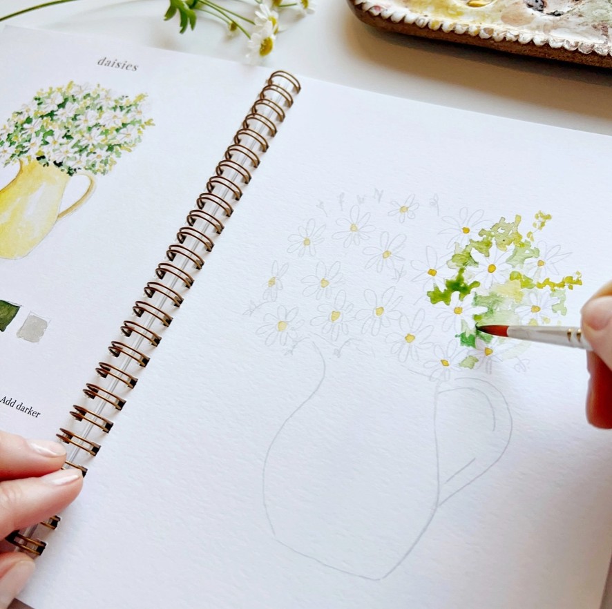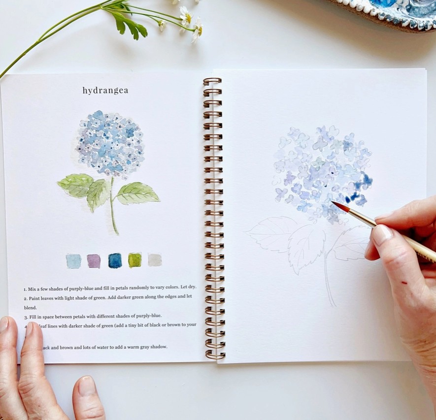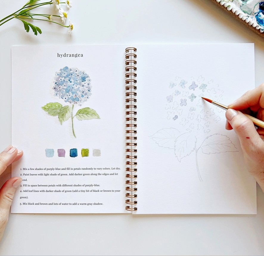 „Flower Watercolor Workbook“ – tai akvarelės piešimo knyga su 12 gėlių iliustracijų. Joje rasite pavyzdį, kaip turėtų atrodyti baigtas piešinys, išsamius žingsnis po žingsnio nurodymus ir lengvai pažymėtus eskizus, pagal kuriuos galėsite tapyti. Tai tarsi spalvinimo knygelė, tik skirta akvarelei!🌼