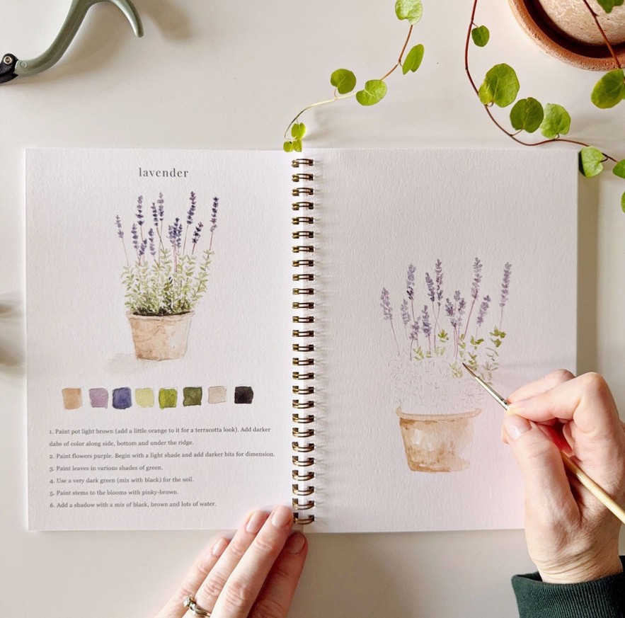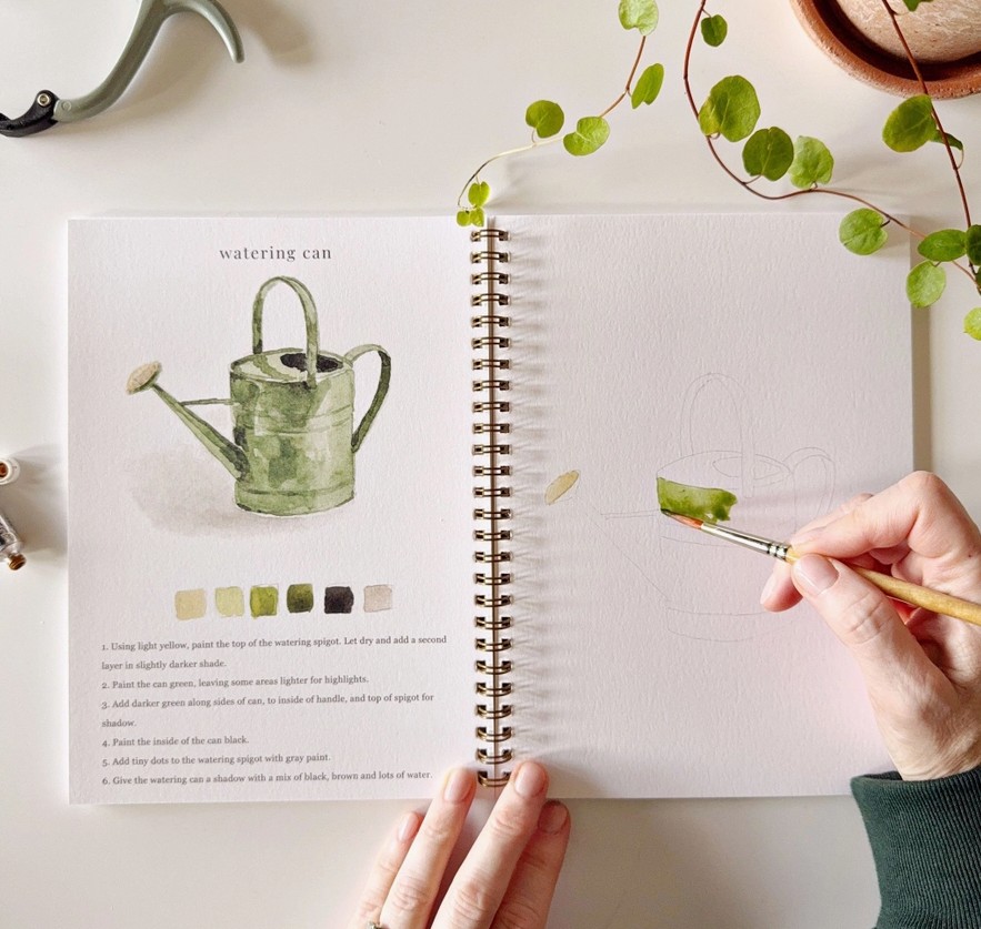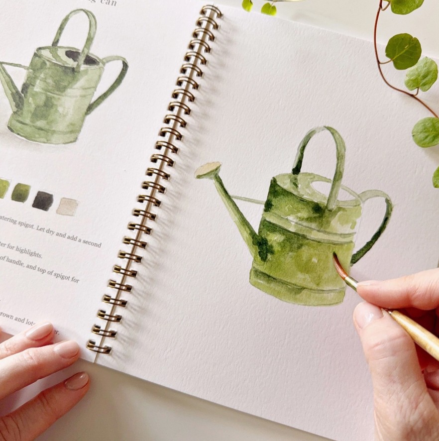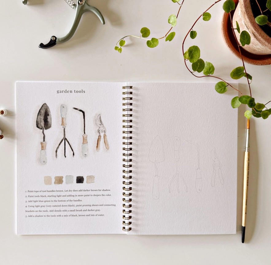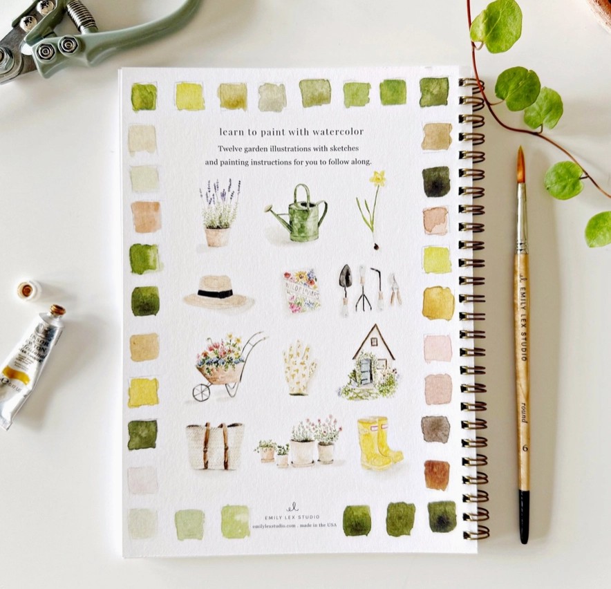 „Garden Watercolor Workbook“ – tai akvarelės piešimo knyga su 12 sodo iliustracijų. Joje rasite pavyzdį, kaip turėtų atrodyti baigtas piešinys, išsamius žingsnis po žingsnio nurodymus ir lengvai pažymėtus eskizus, pagal kuriuos galėsite tapyti. Tai tarsi spalvinimo knygelė, tik skirta akvarelei!🌱